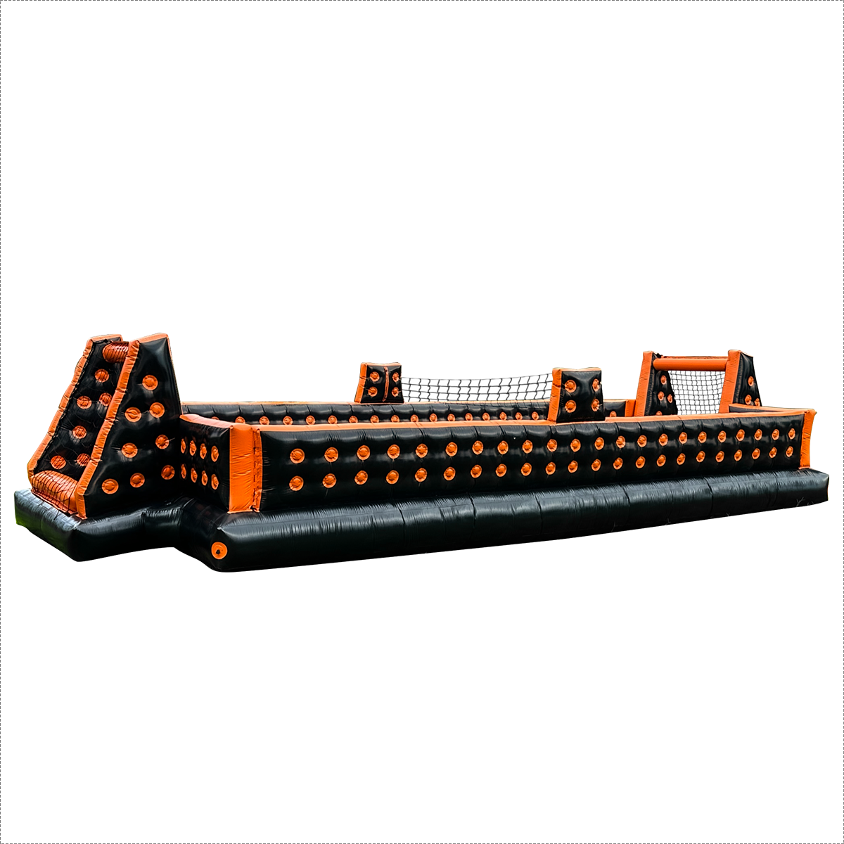Invista na Quadra de Futsabão Inflável 12x6 - Preto e Laranja e destaque-se no mercado de locação de brinquedos infláveis, proporcionando 2 esportes em um só brinquedoTransforme festas e eventos em momentos inesquecíveis!